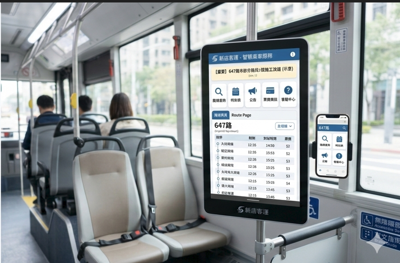 整合地圖、步行導引與站牌設施資訊(示意)。